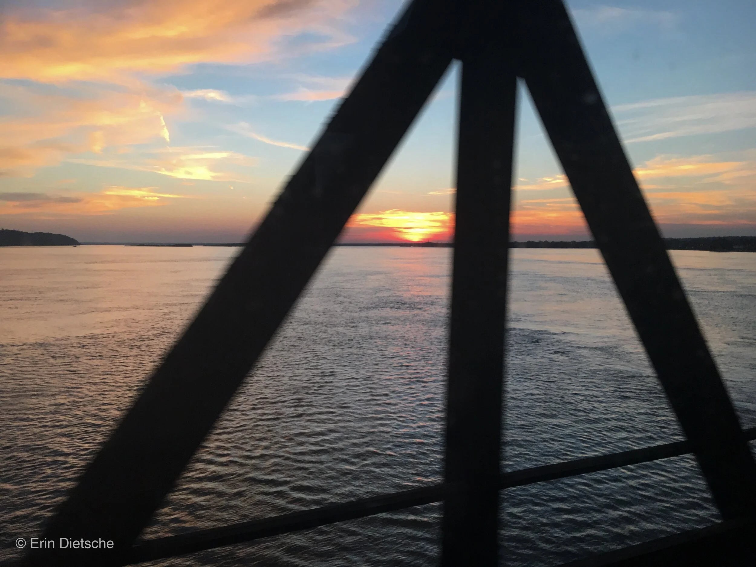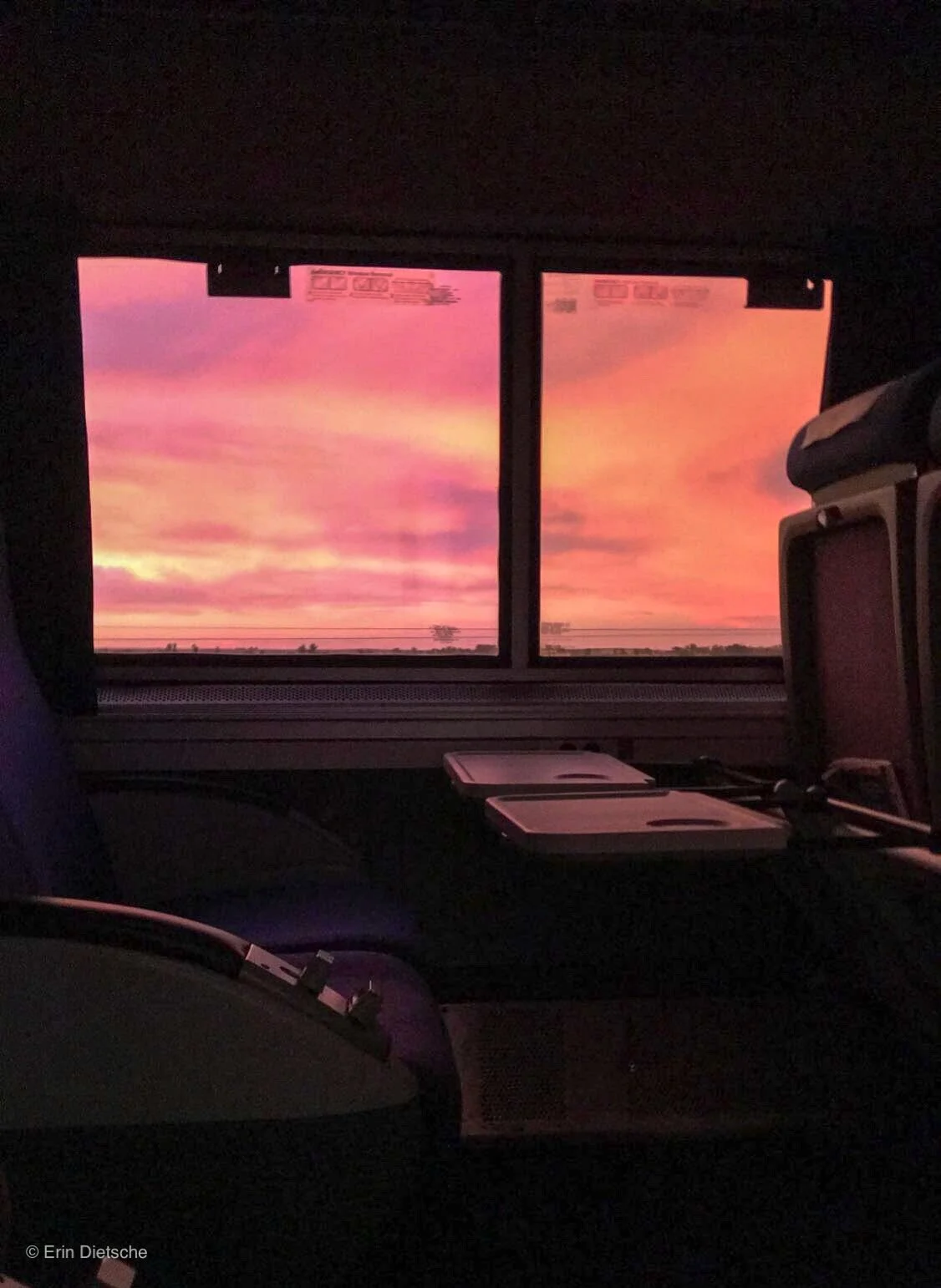 As the day came to an end and the sun was setting, we crossed over the Mississippi River from Illinois into Iowa. The water was like glass and created a beautiful reflection on the river. With the light gone, I decided to go to sleep. Iβm not sure of my exact location, but I think I fell asleep in Missouri, and the train continued across Kansas overnight.