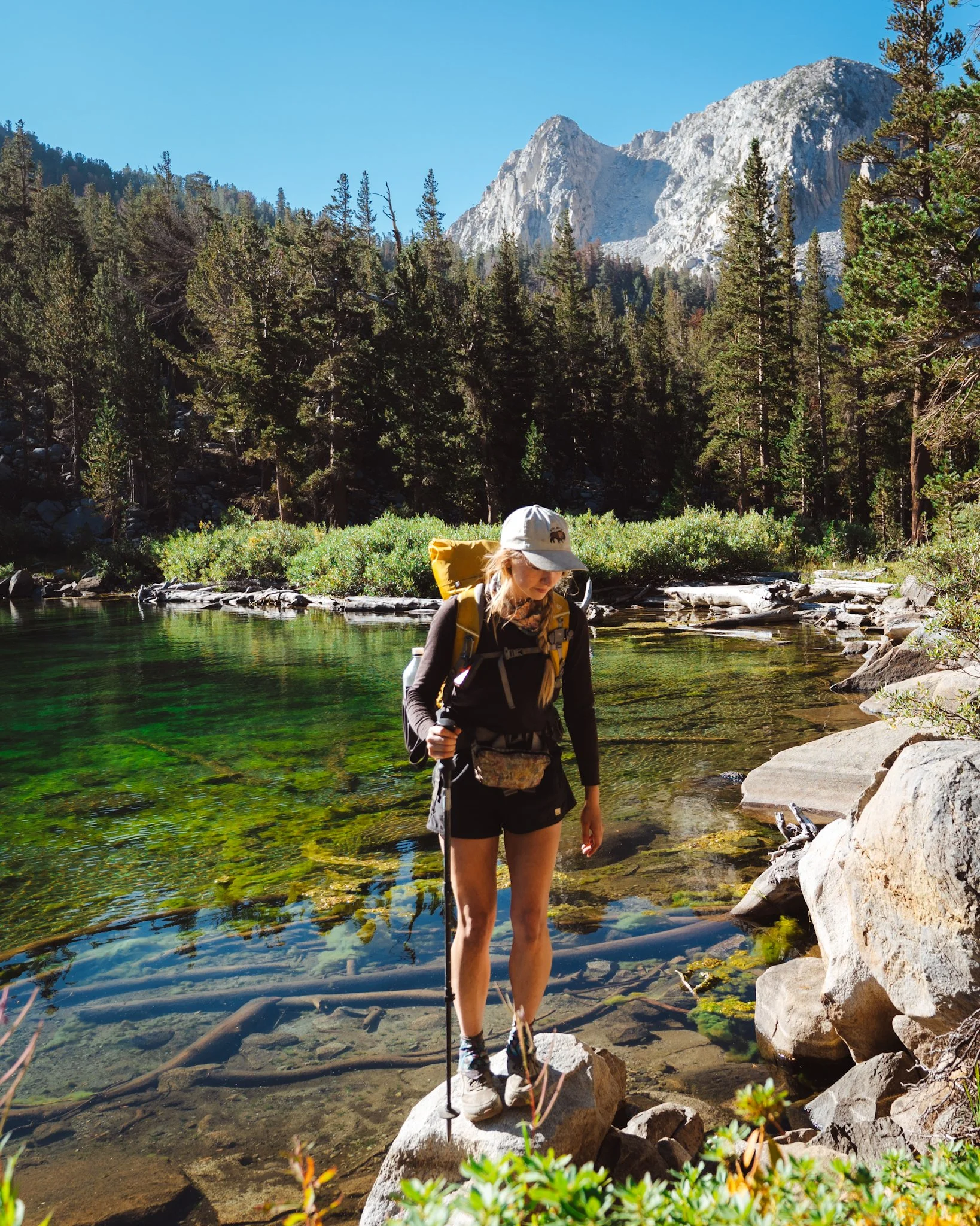 I wore the 2.5”, low-rise Lululemon Hotty Hot Shorts for over half of my Pacific Crest Trail thru-hike (1,325+ miles!). These are a favorite short of mine for running, hiking, and backpacking. Although these are technically running shorts, I think they work great for hiking. I like that they come in different inseam lengths and rises. My go-to now is the 4”, high-rise version (I like the additional coverage). These shorts are super comfortable, cute, and quite durable – I still own and wear the same pair I used for those 1,325+ miles of hiking!