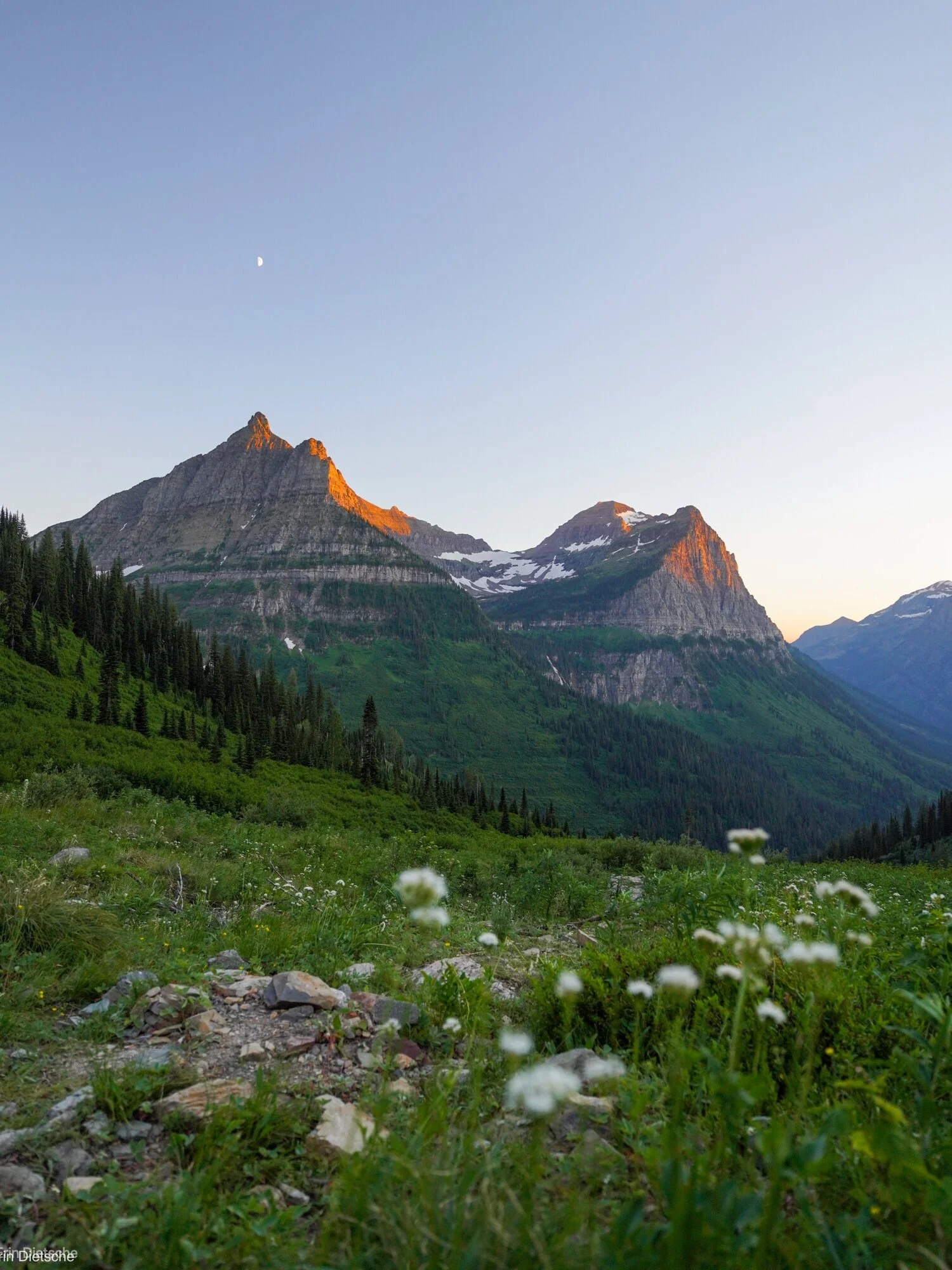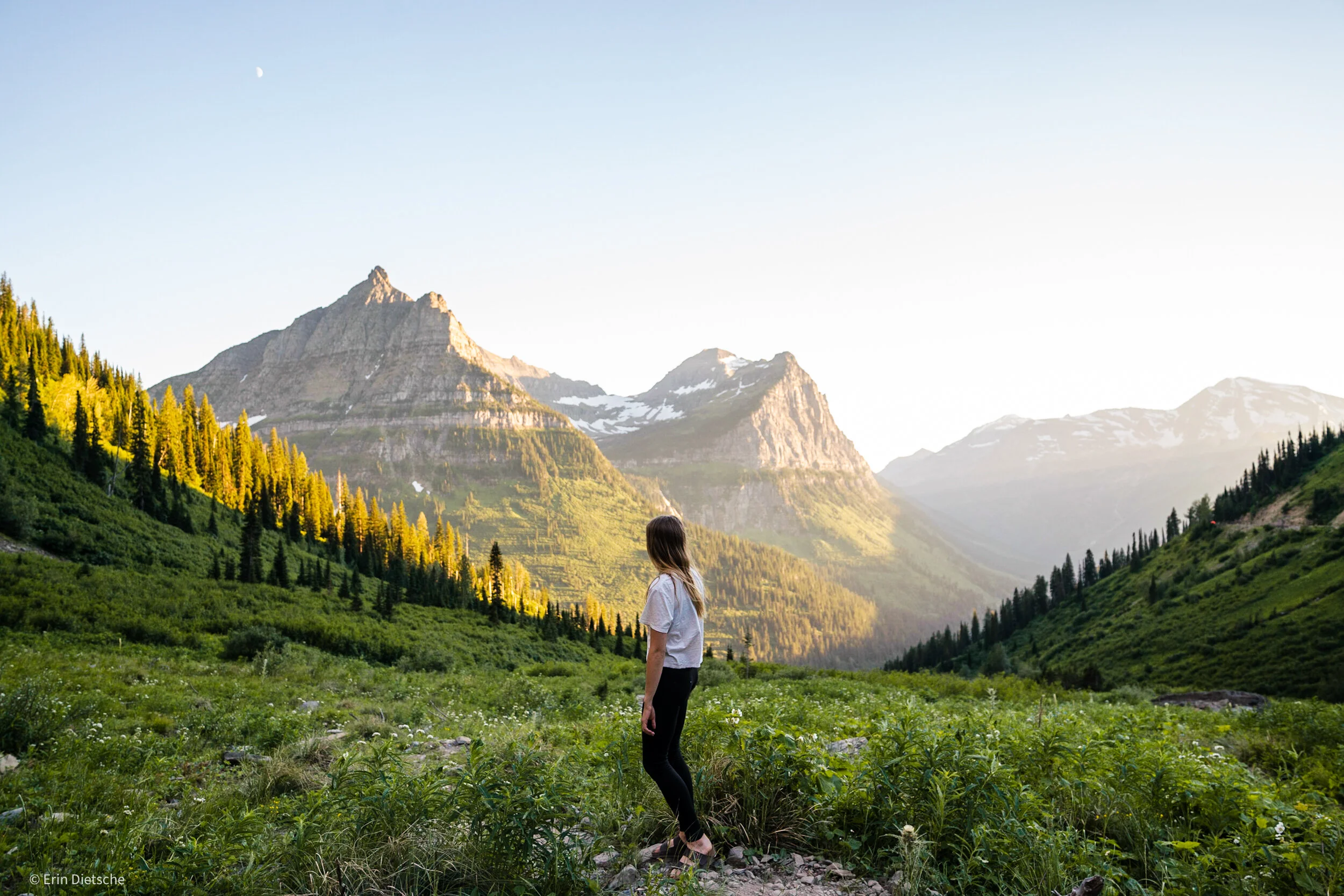 I love hiking to places for sunrise and sunset, but after a long day of hiking, it is really nice to enjoy the sunset without having to hike multiple miles. For this reason, I recommend Big Bend to watch the sunset. This is a pull-out on Going-to-the-Sun-Road, where you can park and get out of your car to watch the sunset. You don’t have to walk far to see these incredible views. Here, you can watch the last light hit the mountains. This is also apparently a popular spot for wedding photos - we saw at least three different wedding parties taking photos here at the same time when we watched the sunset! Don’t fret, though, there is plenty of space for everyone to enjoy the view.