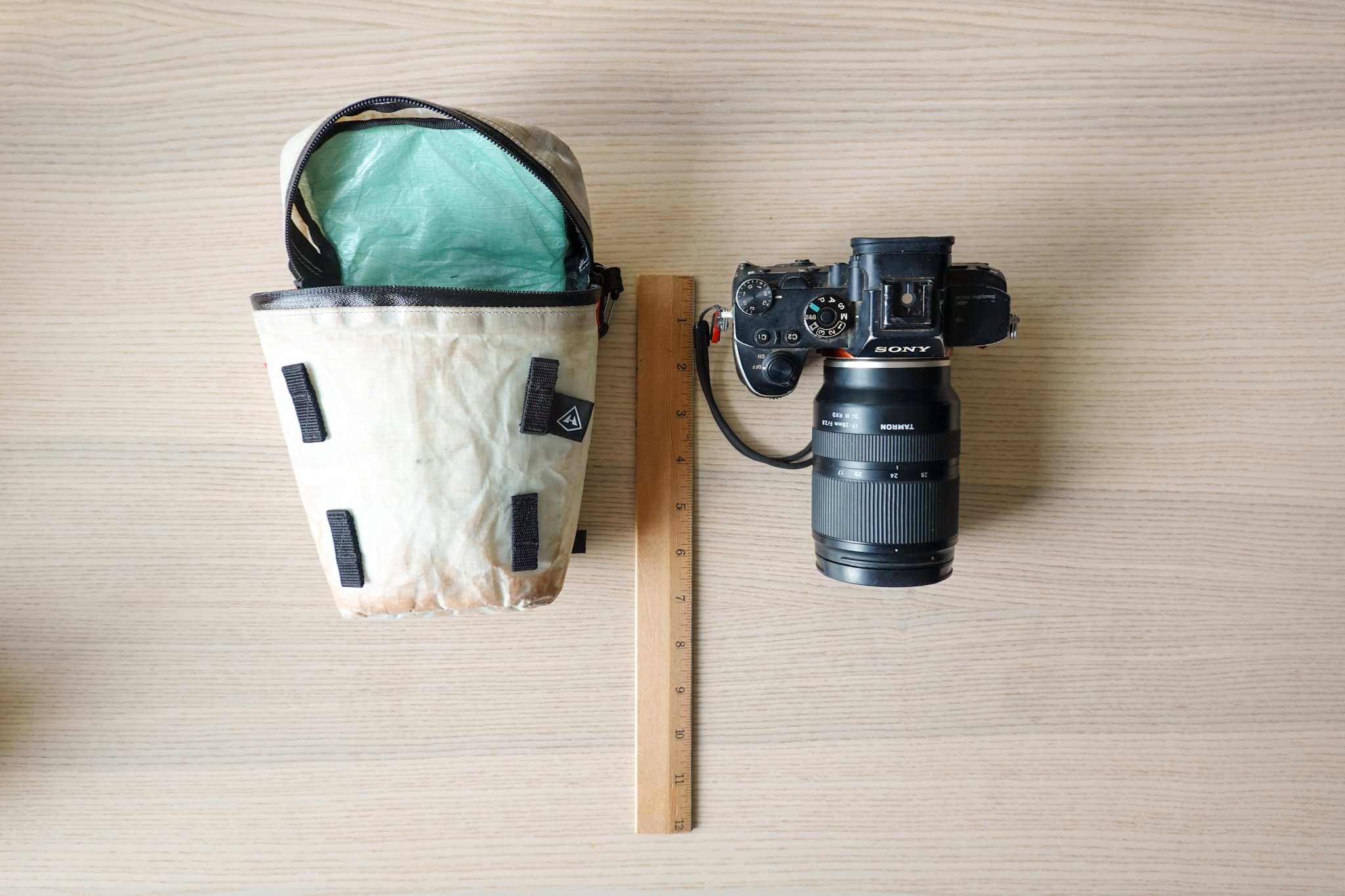 On my recent day hikes and backpacking trips, I fit my Sony A7RIII with the Tamron 17-28mm f/2.8 attached in the regular-sized HMG Camera Pod (with no room to spare).