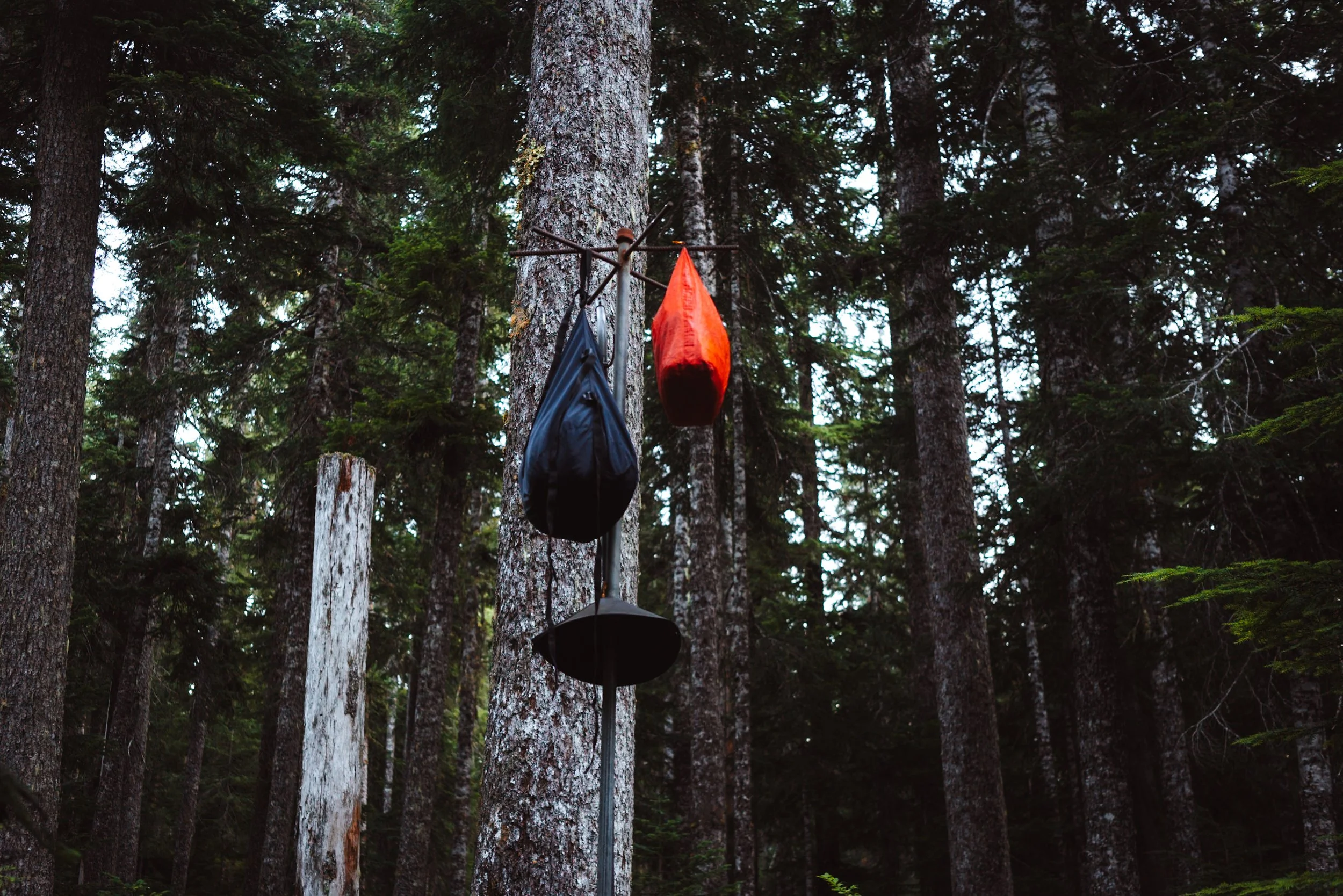 Each backcountry campsite in Mount Rainier National Park has either a metal pole with hooks for hanging food bags or bear-proof food lockers. Bring some sort of dry bag or stuff-sack that can hang from a hook to hang your food and trash with.